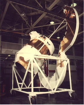 The wings were powered by a variation of the Harmonic drive but this time it was developed by another contractor. The panels were clamped together to withstand the launch environment. We had little sheer plates of hardened steel to transfer the sheer load between the panels. These were mating male/female plates with tapered edges that transferred sheer load just in one plane but allowed motion in other planes. The whole stack was held together with very high strength latches that were released pyrotechnically on command on orbit. Because of the increased safety factors required by manned space flight, we had to design these redundantly (two charges were used) and with high safety factors. The pyrotechnics were spec’ed at +100, -20%. They had to be able to operate at 80% charge with the most extreme of temperature, resistance, etc. but they had to function and not break with two charges going off at +100% output each. Then the astronauts came in and said, “What if they were disconnected and we went EVA an they went off when my head was in the way?” So they had to remain intact operating without any resistance with two charges at +100% overcharge and we had to demonstrate it.